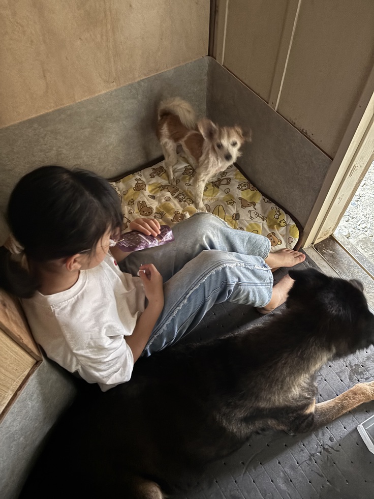 クーのために小屋室内床壁横を寒さ対策して貼ってくれました😭🙏✨✨