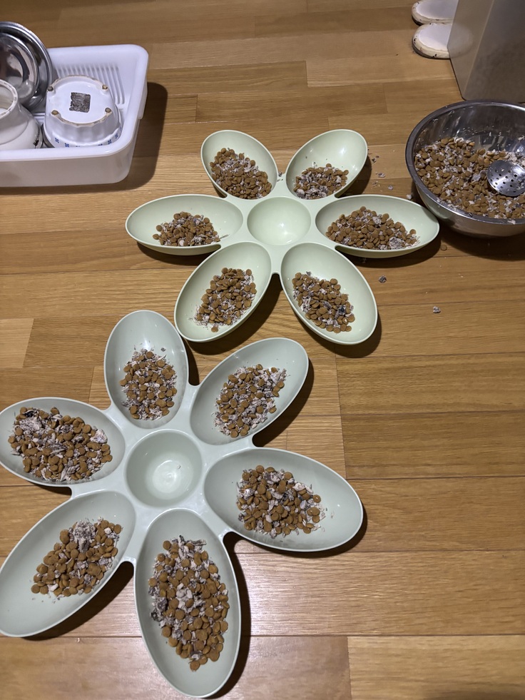 母が猫達に魚をゆでてフードプロセッサーで