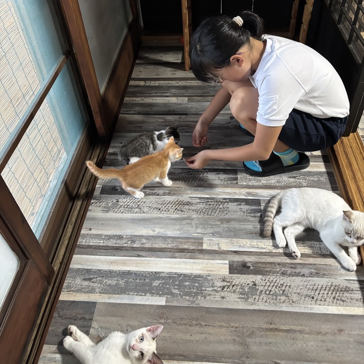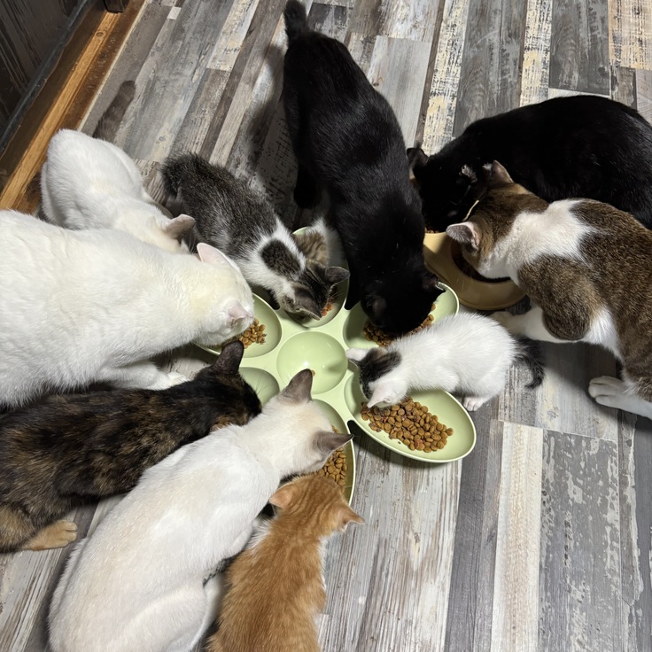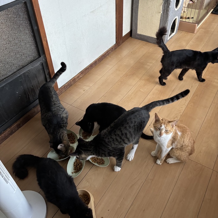 休みの日も猫達みんなのお世話をしてくれる