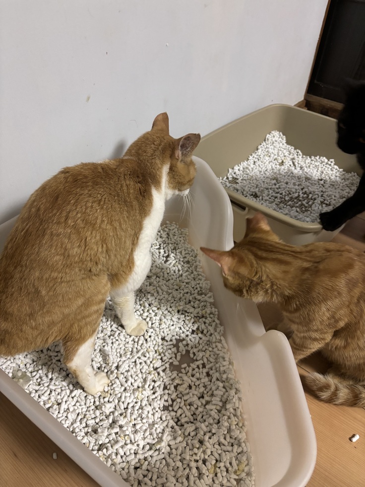 帰宅してからは、トイレでおしっこができました✨なぜか心配そうに見守ってくれる太陽🐱💕優しいね太陽ありがとう😭
