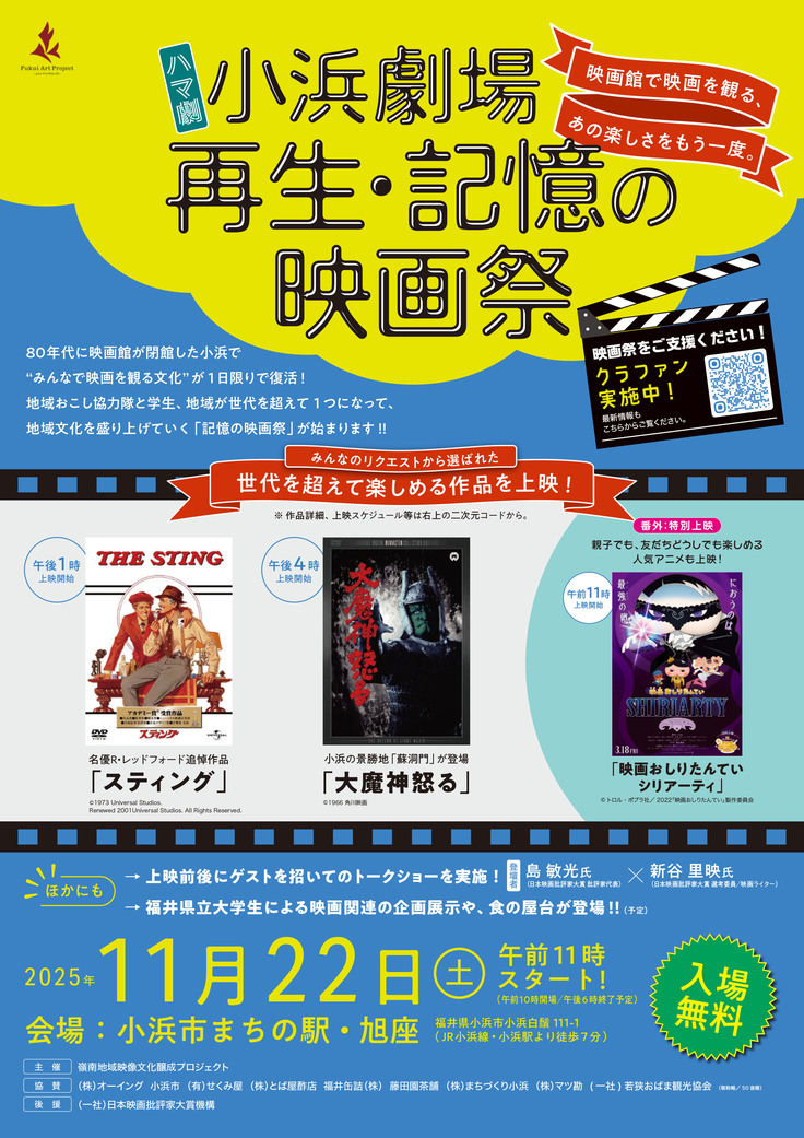 ポスターでは、「映画館のないこの町に、失われた『集団的鑑賞体験』を取り戻したい!」という熱いメッセージと共に、旭座という歴史的な空間での1日限りの復活を訴求しています。