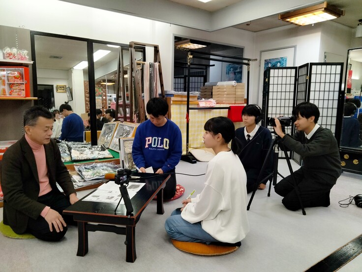 先日、学生たちが小浜駅通り商店街振興組合の理事長を務める岸野光恭さん(創業150年の山文呉服店 四代目)にお話を伺いました。