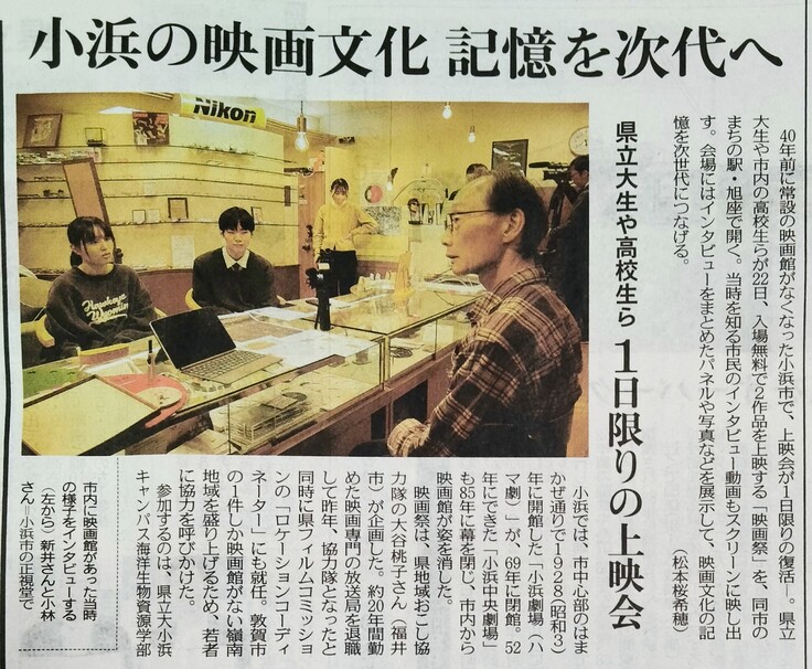 映画文化の記憶を次代へ 県立大生や高校生らが小浜で1日限りの上映会