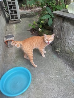 最近又少し大きめの子猫を2匹連れて来ているらしいです。又知らぬ間に春に出産していたみたいです。最近うちにも又来出して・・・よく見るとお腹がポッコリ!?又!?