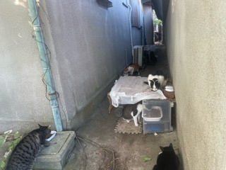 出勤前、バス停までの途中の餌やり場、皆道を渡って走って食べに来ます。