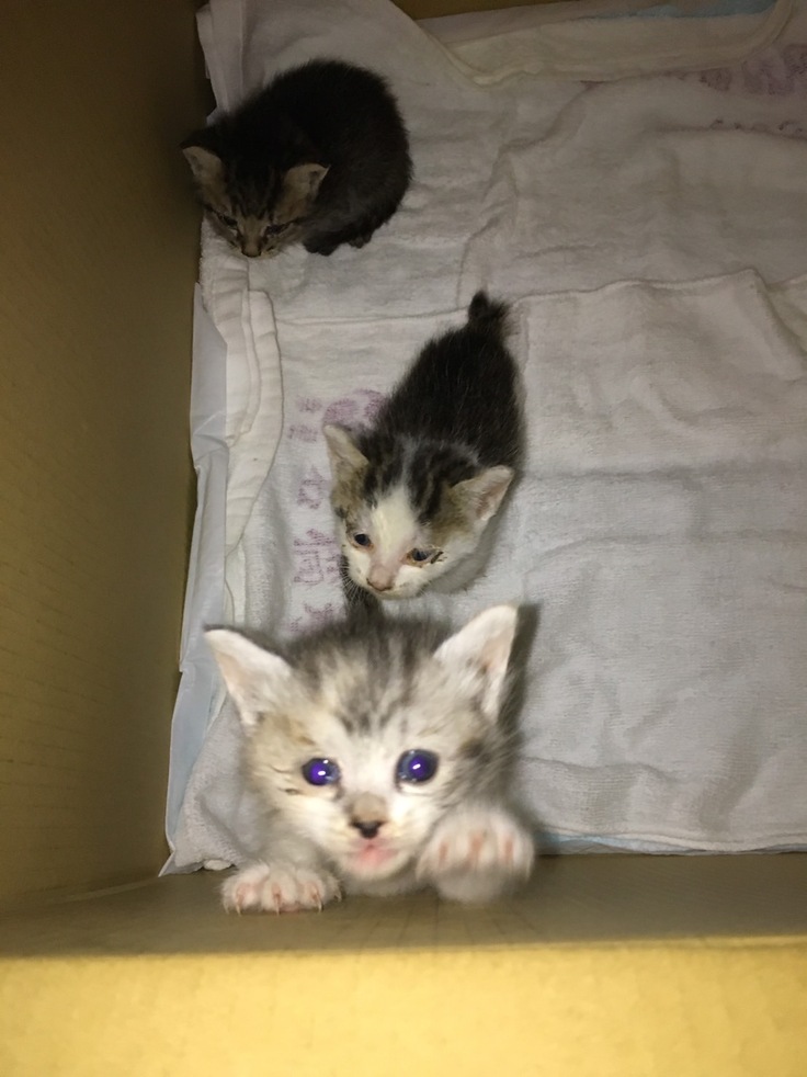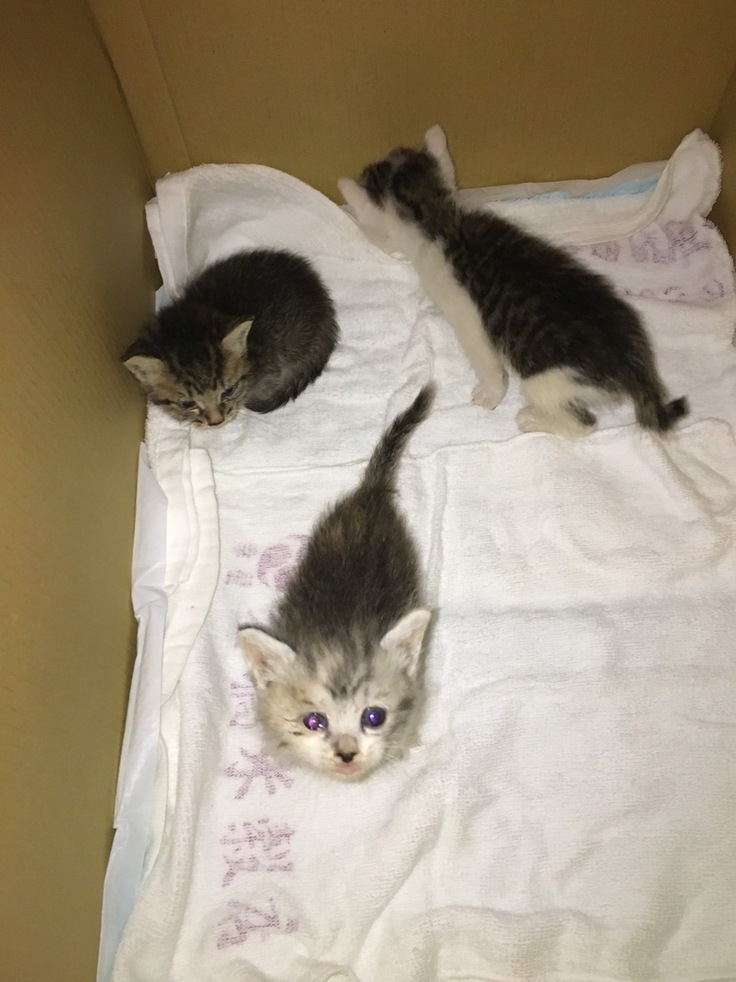 8年前のGW最終日、まだ他市に住んでいて、たまたま実家に来ていて帰るところ、雨の中隣の空き家の植え込みで鳴いているこの子達を見つけました。親猫はおらず、一先ず家に連れ帰り、ミルクと哺乳瓶を求め買いに走りました。猫活のきっかけです。実家に移り住む事になりました。1匹は知り合いのツテで里親さん宅へ、1匹は7歳目前でエイズ陽性の為昨年亡くなってしまいました。後の1匹はうちに残り何とか元気に過ごしています。