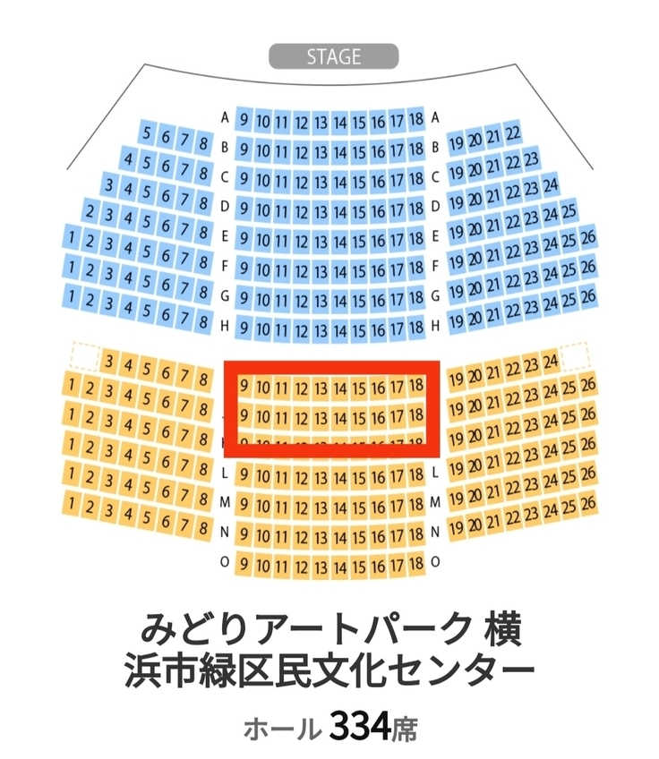 ★優先座席は、こちらの図の、赤で囲ったあたりになります。その中から、順にお好きなお席へ着席していただけます。
