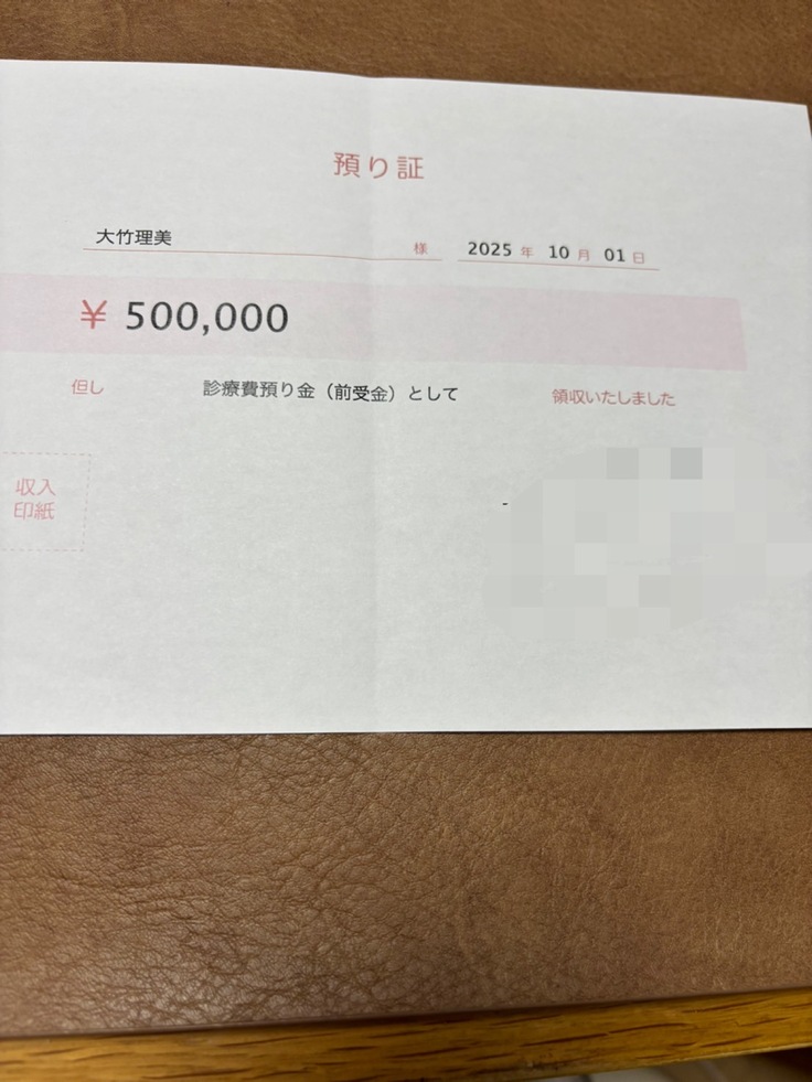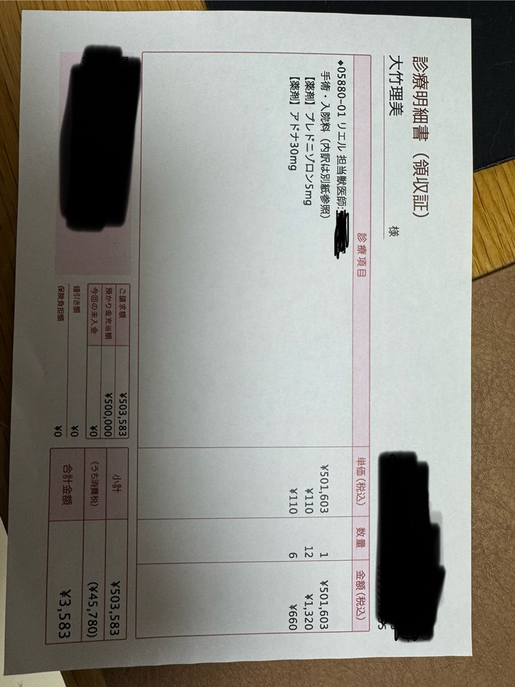 手術日は10月1日で50万円かかりました。