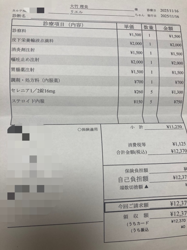 小腸の消化が短くなっているからとのこと、ガッツリ薬が効いてる証拠でもあるのですが脱水予防に栄養剤を入れてもらいました。来週の抗がん剤はこのままだとスキップかも。