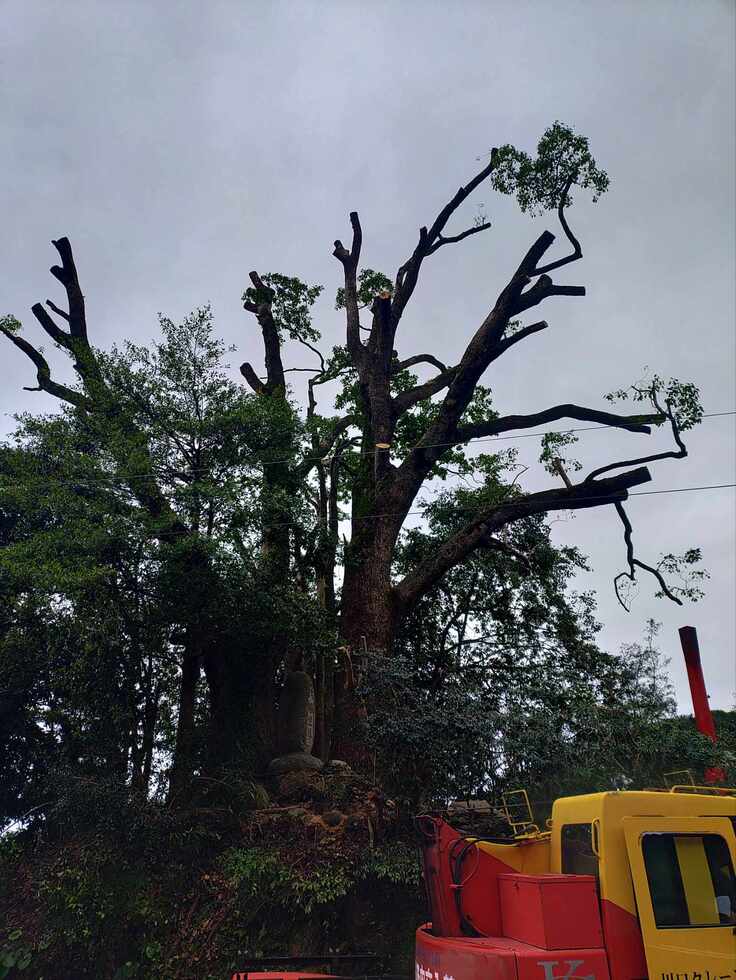 大きくなりすぎた樹冠を小さくして、お宮の整備をする