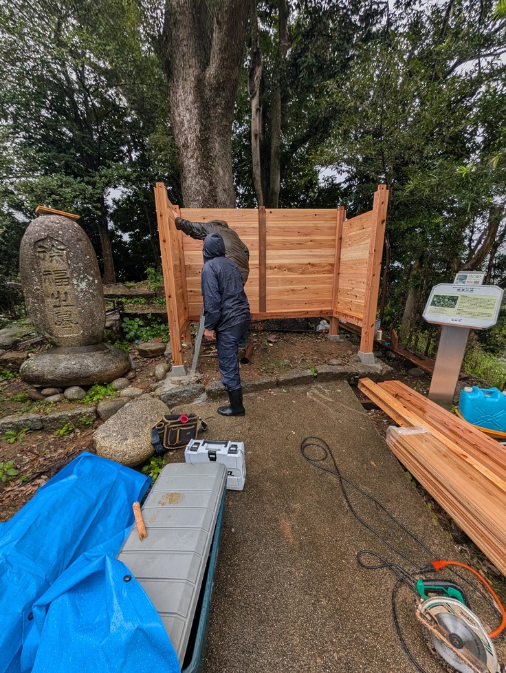 あいにくの雨でしたが、必要最小限の建前をしました。