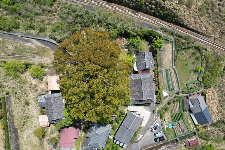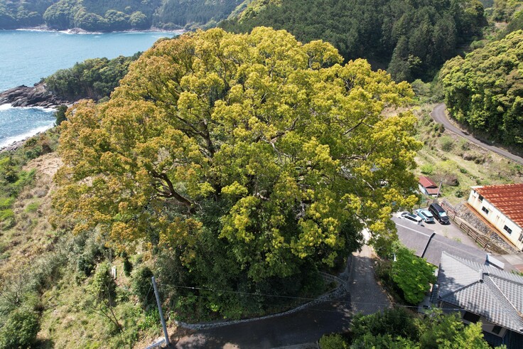 御神木のクスノキの樹冠が見事です。