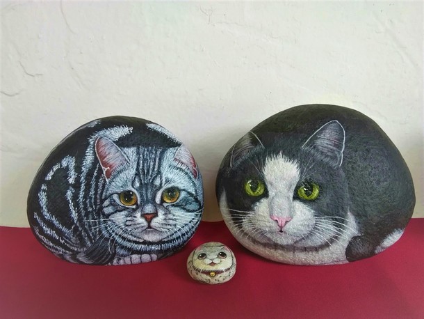 石に描いた猫 「ボヌール(幸せ)」