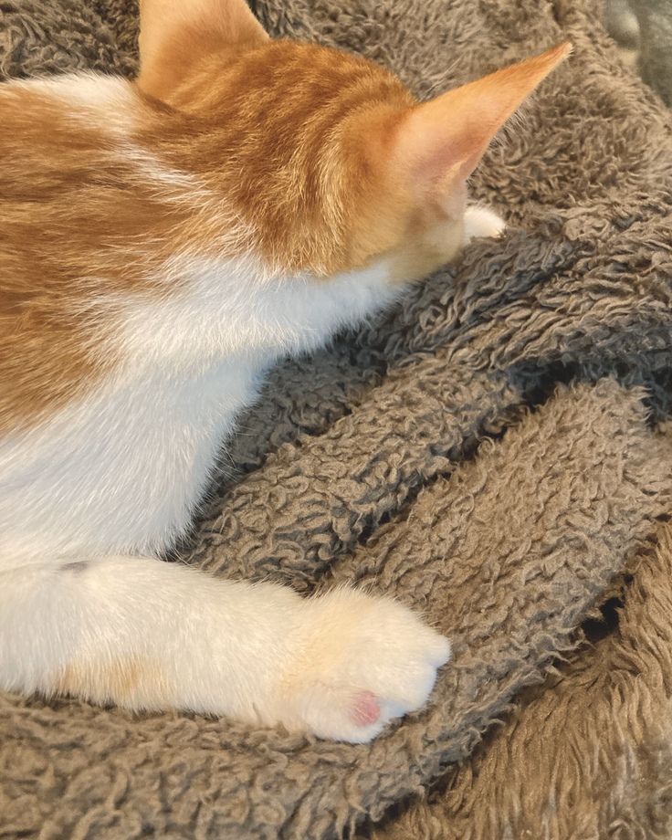やけに毛づくろいするなと思っていたら、4箇所ほどハゲていました…。(脇腹、指先、足の裏、耳も?)