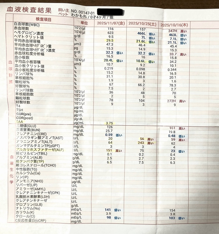 血液検査の不安要素もだいぶ減り、わかもれが快方へ向かっていくのを日に日に実感しております。