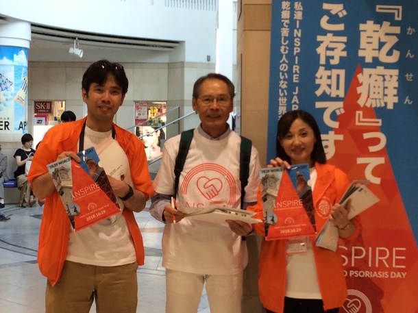 一生治らないと言われて治療をあきらめて引きこもってしまったり、誤解や偏見のために社会から疎外され孤立したりしている、乾癬の人々を助けたい、そして乾癬の認知と理解をもっと向上させたいという強い想いから、乾癬患者会の有志6人が「INSPIRE JAPAN WPDプロジェクト」を立ち上げ、2017年10月29日の世界乾癬デーに日本で初めての乾癬患者による乾癬啓発イベントを東京タワーで行いました。