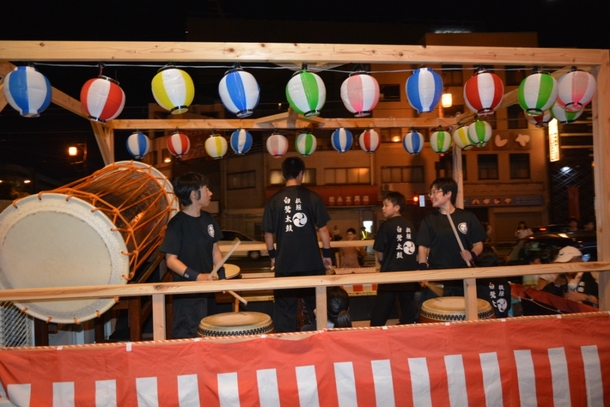 昨年までの提灯は写真のようにカラフル提灯を掲げただけでしたが、今年は鳴物山車の提灯にご支援頂いた方の企業名、お名前、自分のアピールしたい言葉(10文字以内)などを書き入れて福井の街中を長時間に渡って練り歩きます。