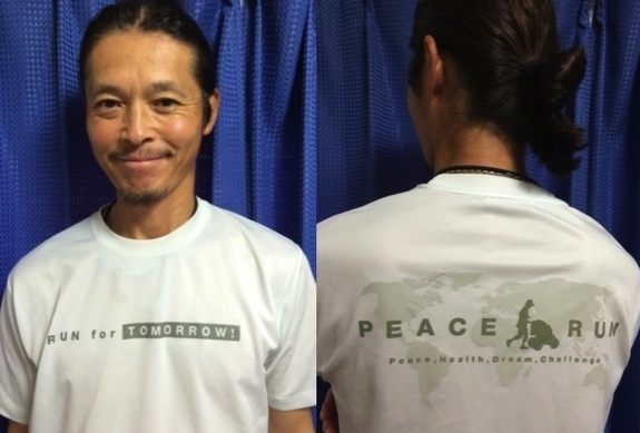なお、3万円以上のご支援を頂いた方にはPEACE RUNオリジナル公式Tシャツ(写真)を送らせていただきますが、既に送られているメールでご希望の色とサイズをお知らせ下さい。