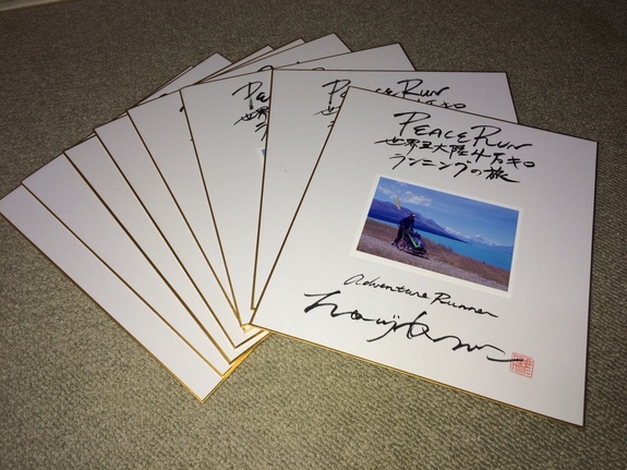 クラウドファンディングREADYFOR?で1万円のご支援を頂いた皆さんに「PEACE RUN世界五大陸4万キロランニングの旅」の色紙を送らせていただきます。