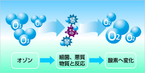 オゾンは悪臭を他の匂いで誤魔化す芳香剤と違って、悪臭の素を分解するため高い消臭効果が得られます。また、細胞膜を破壊する働きもあるので除菌効果も見込めます。