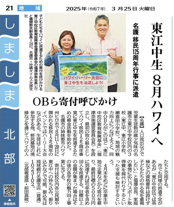 沖縄ハワイ移民125周年記念交流事業 WE LOVE東江中ハワイ派