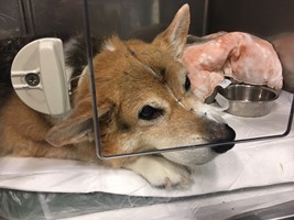 心中では嫌な考えもよぎりましたが、、、ICUの酸素室治療とレオくんの頑張りで症状も落ち着き始めています。