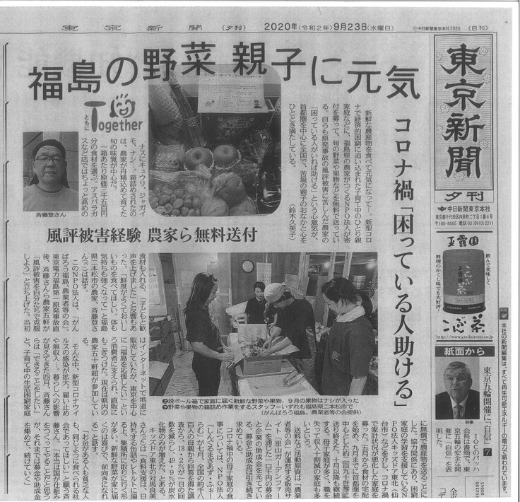 ▼第1回 食糧支援について東京新聞で取り上げてもらいました▼