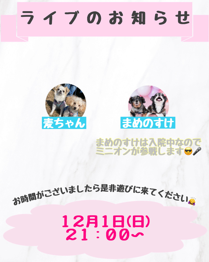 今日12/1(日)21時〜麦ちゃんとコラボライブを行います☺️🎤