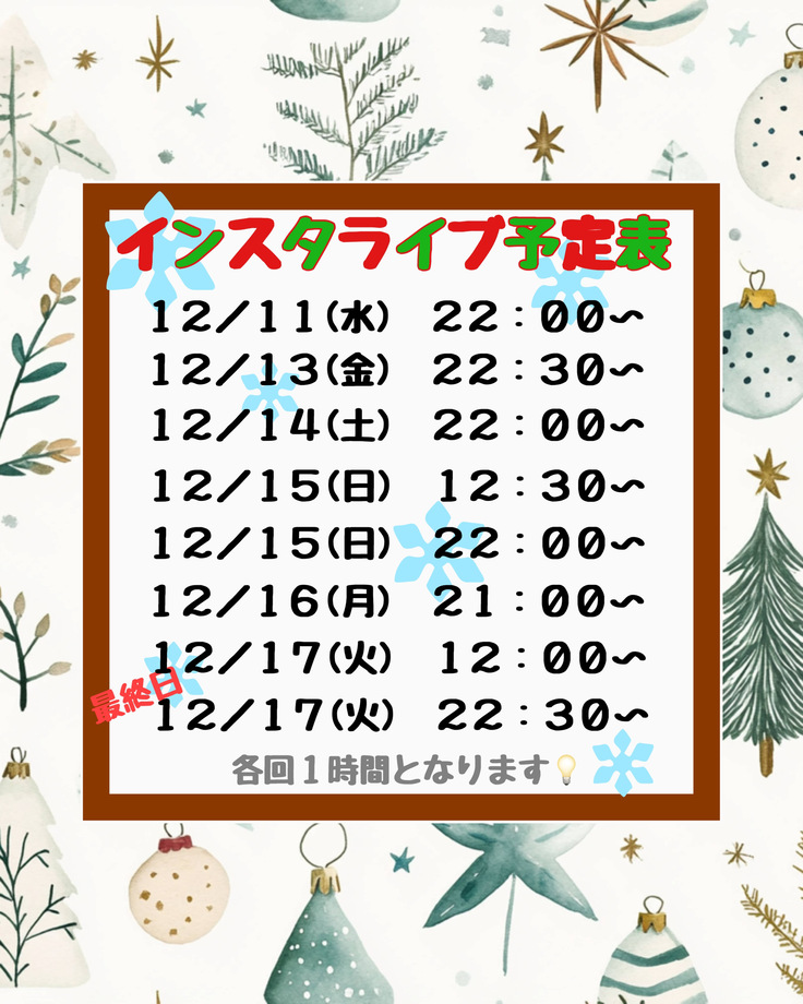 最終日までのライブ予定表です🎤