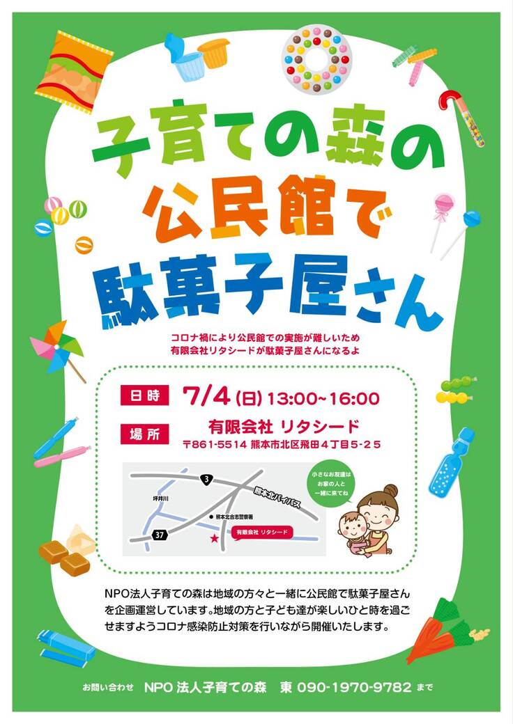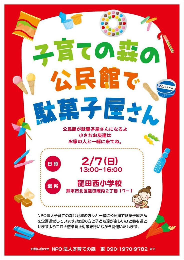 2020年4月NPO法人子育ての森を立ち上げたものの、コロナウイルスが蔓延。緊急事態宣言が発令されてしまいました。当初予定していたイベントもできぬまま、何もできないと沈み込んでおりましたが、コロナ渦のなかでも何かできることはないかと仲間達と考え、公民館で駄菓子屋さんというイベントを開催し始めました。(蔓延防止法の間は公民館も使用中止になってしまいます)