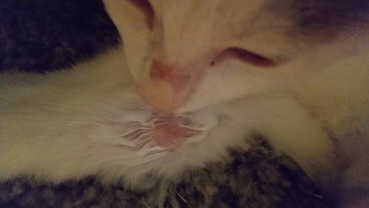 猫の呼吸は20~40回/分と言われているのに対し、この時テンの呼吸は60回/分を超えていて、息をするたびに頭まで揺れていました・・