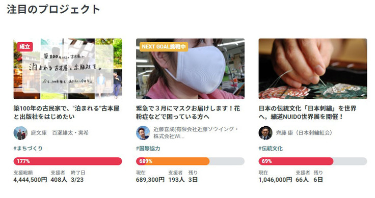 これまでの皆様のご支援により、注目のプロジェクト欄に取り上げていただけるようになりました!有難うございます。