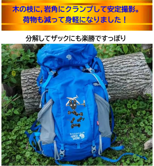 この、スマホ・カメラホルダーと、カメラバックパッククリップK10の