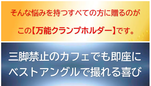 それでは、今回のプロジェクトの本題に入ります。このスマホ・カメラホルダーを入手してからの