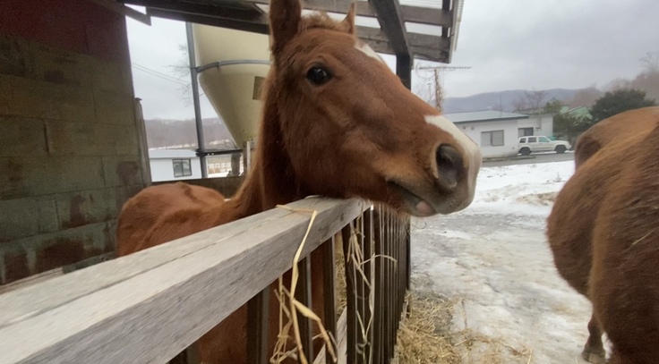 北海道の厳しい冬はライナーが、大好きな母馬と過ごした放牧地を凍らせました。