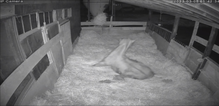 ▼馬房内に設置したカメラで録画した、何度も失敗しながらも立ち上がろうとするライナーの様子