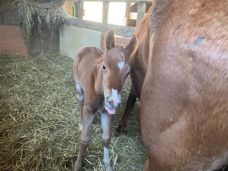 ため、狭い馬房に母馬とライナーの2頭を入れるには無理があったので、2022年12月1日に強制的に離乳させ、ライナーだけ馬房で過ごす事になりました。
