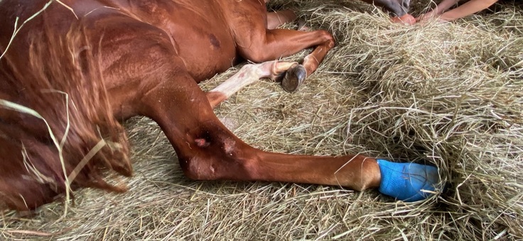 左前肢の時のように、抗生物質の注射を打って頂き、左後肢(蹄)に包帯を巻いて処置して頂きました。