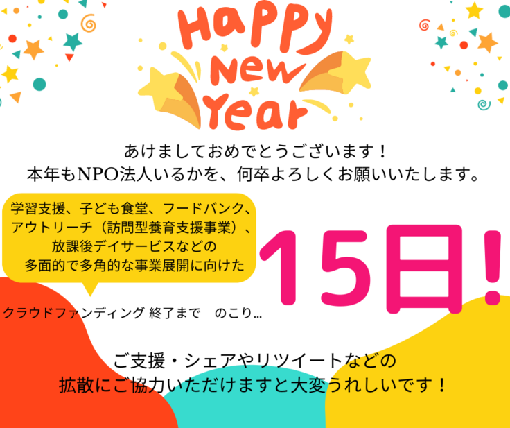 旧年中のクラウドファンディングでは、私どもNPO法人いるかの
