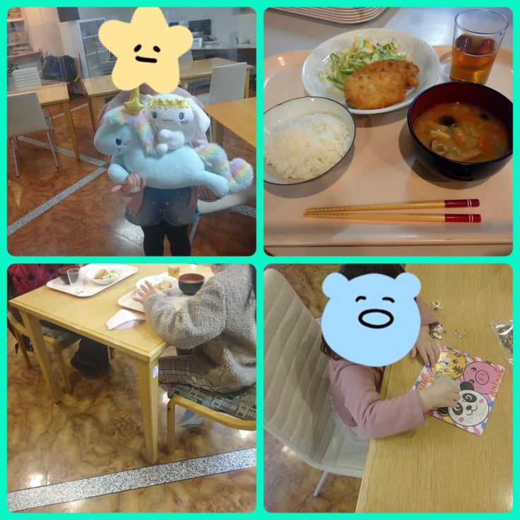 パズルで遊んでいたり、お気に入りのぬいぐるみを抱いて喜ばれていました。