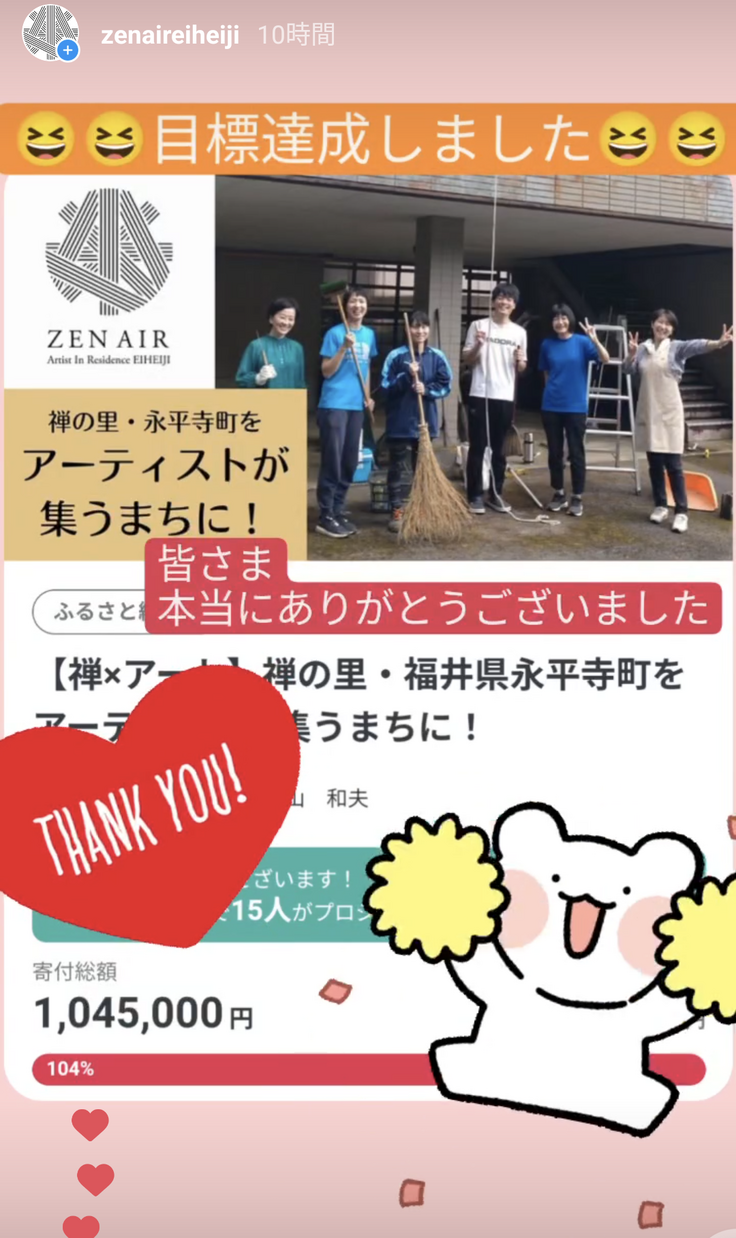 また、クラファンへのご支援はもちろん、アーティストのリサーチ活動、展示会場提供など、様々な場面でたくさんの方からあたたかいお声がけ、ご協力、サポートをいただいております。本当にありがとうございます😊