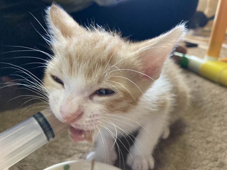 ヤマトですが、食欲にムラがあり今日はお皿からあまり食べてくれなかったので、お皿にする前と同様のシリンジにてあげてみたところ、喜んでたくさん食べてくれました。