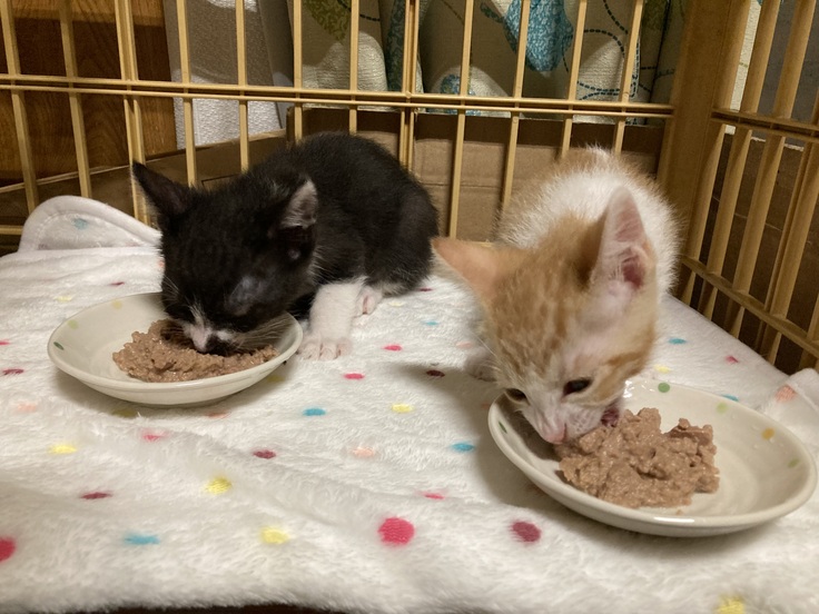 子猫たちは今日もとても元気です。食欲にムラはありますが、体重も増えてくれています。早く肺炎が良くなることを願って頑張ります!