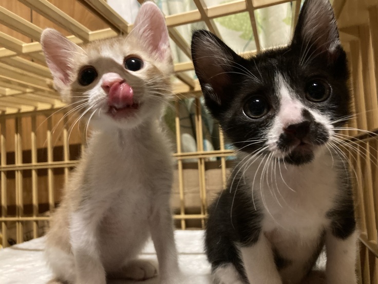 子猫ちゃんたちの通院日で診察とレントゲンを撮ってもらいました。体重が2匹とも900gで標準よりも少し大きいぐらいだと言われました。肺炎は分かりにくいけれど、少しずつ良くなっていると思う、ナイトの漏斗胸も良くなってきているから軽度のままでいけるのではないかと嬉しいお言葉をいただくことが出来ました。