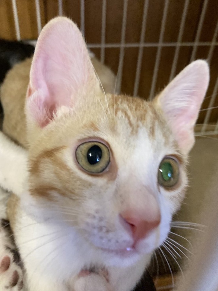 ヤマトですが、猫風邪の後遺症で左目の一部が白濁しております。最近、その左目が光の加減で黄緑色に光ることがあり気になっています。フラッシュやライトをつけていない状態で左目だけに起こる症状なので、目のガラス(角膜?)に問題があるのかなと思います。ちゃんと動くものを目で追えているので大丈夫だと思いますが、心配なため今度の受診時に相談してみようと思っています。