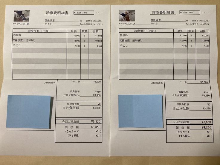 今日はナイトとヤマトの肺炎の経過を診るための通院日でした。
