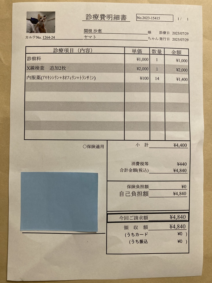 ヤマトですが、今日も呼吸がゼェゼェ言っており心配なため病院へ行ってきました。