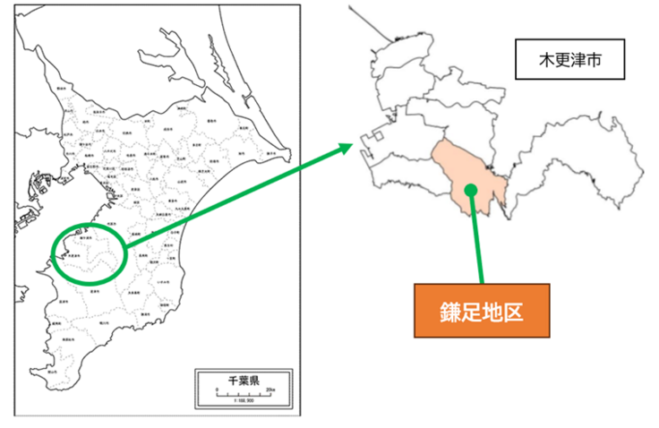 「鎌足地区」は千葉県木更津市の中南部一帯、矢那、草敷、かずさ鎌足1丁目~3丁目を含む地域です。君津郡 鎌足村(旧 望陀郡 鎌足村)が1954(昭和29年)に木更津市へ編入合併され、鎌足地区と呼ばれるようになりました。市内 8 地区中最も人口の少ない地区であり、人口・世帯数は共に減少傾向にあります。