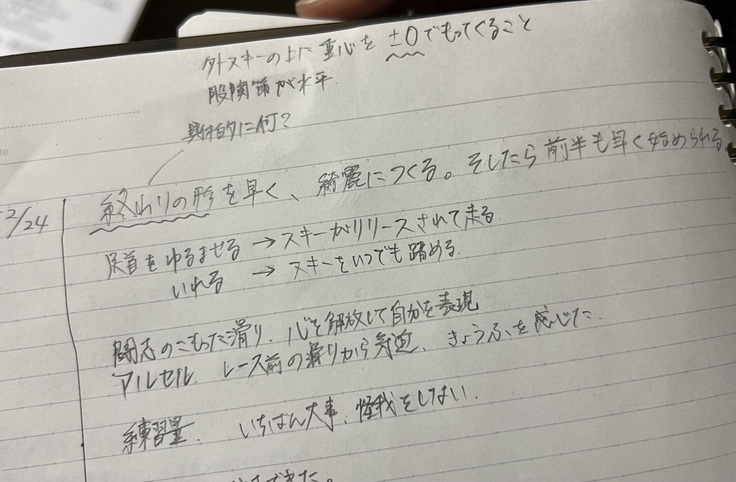 (他のページにもこれまでの練習の振り返りや反省がびっしりと書かれていました。)