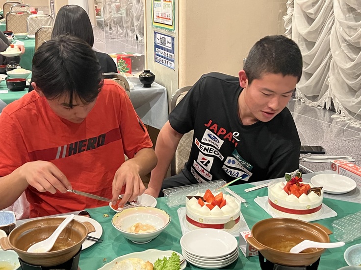 ミーティング後の夜ご飯では、ケーキを盛り付けクリスマスイブを楽しむ微笑ましい様子もありました。